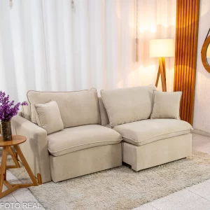 Sofá Retrátil Reclinável Barcelona 2.30m Linho Bege 459 – D33 e Molas Ensacadas Pocket