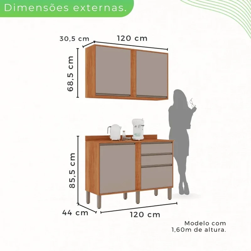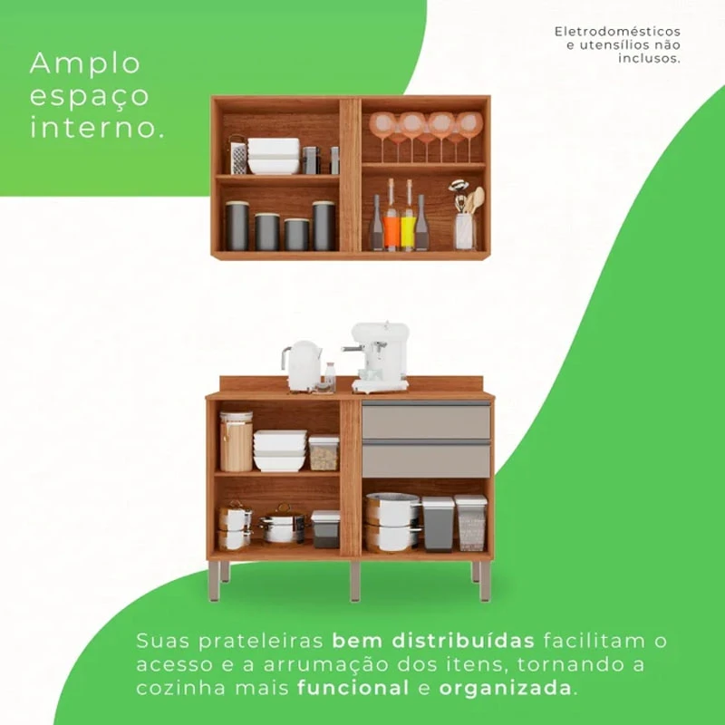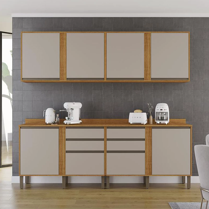 2 Balcões Pérola Cinamomo/Off + 2 Aéreo Pérola 2 Portas Cinamomo/Off Larg. 2.40m Sallêto