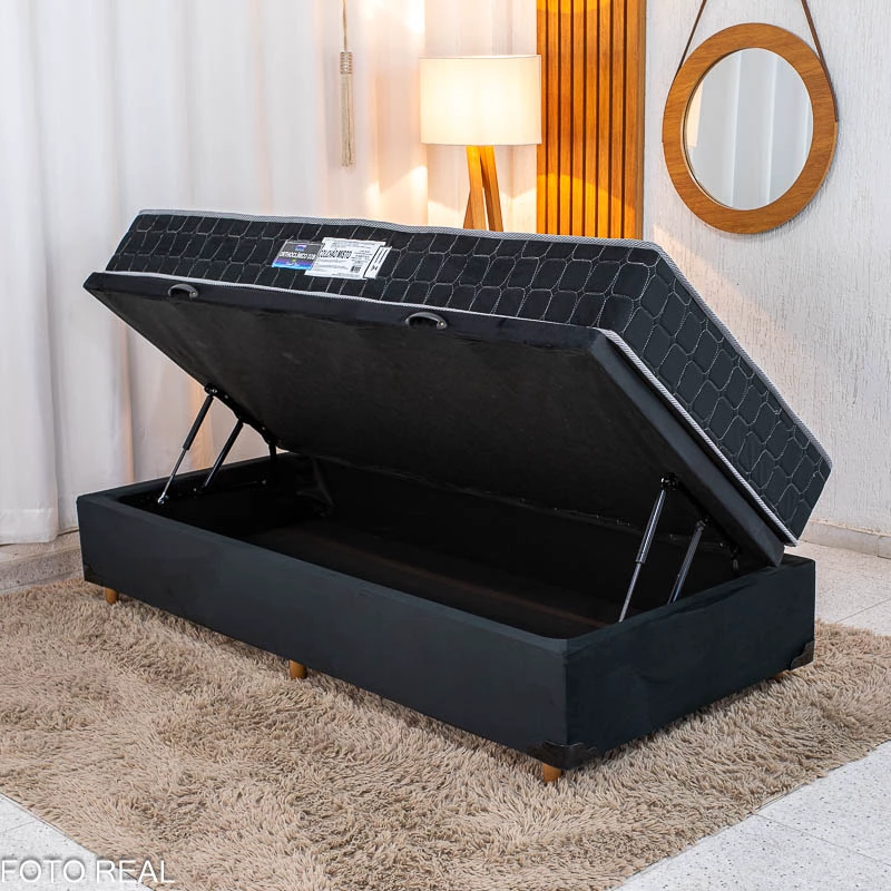 Box Baú Solteiro Pop Veludo Preto – Nature + Colchão Solteiro Orthoclínico 88x188x57 Ortopédico D28 – Orthoprime | Suporta até 120kg