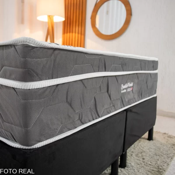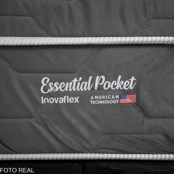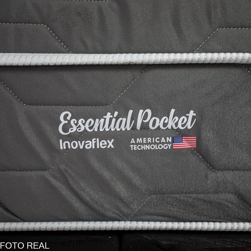 Box Casal Bipartida Sued Preto Nosso Sonho + Colchão Casal Essential Pocket Molas Ensacadas 138x188x68 – Inovaflex | Suporta até 240kg