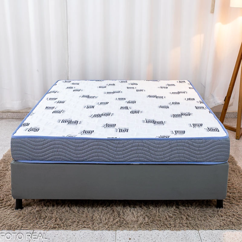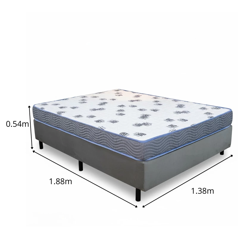 Conjunto Box Casal com colchão de espuma Light D33 Pró, de alta performance, aprovado pelo INMETRO. O colchão oferece suporte para até 130kg por pessoa e conta com tecido 100% poliéster com tratamento antiácaro, antialérgico e antimofo.