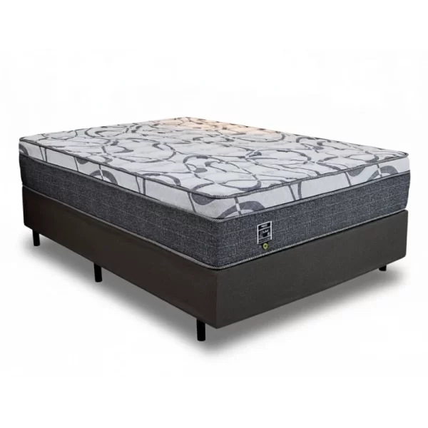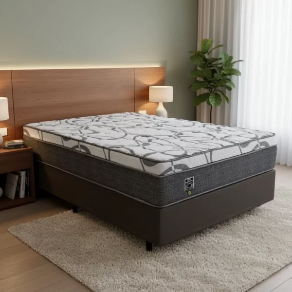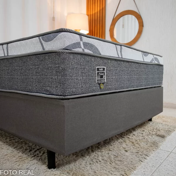 Box Casal Universal Linho Grafite Gazin + Colchão Casal Madrid Euro Molas Ensacadas 138x188x73 Umaflex – Suporta até 240kg