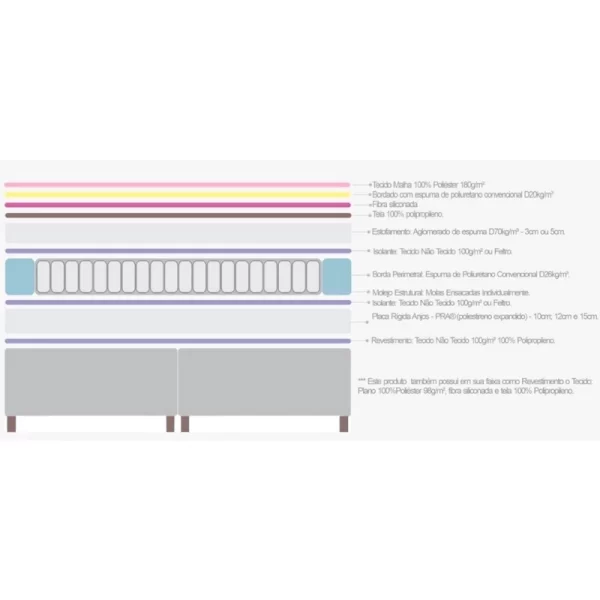 – Quando combinadas com espuma D26 (densidade intermediária), o colchão oferece um conforto médio-macio. A espuma ajuda a suavizar a sensação das molas, proporcionando um equilíbrio entre sustentação e maciez. Assim, não fica nem duro demais nem extremamente mole ? ideal para quem busca conforto sem perder suporte para a coluna.