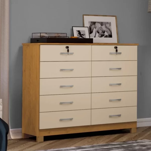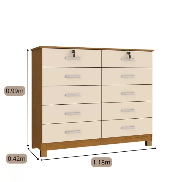 Cômoda Lucca Larg. 1.18m Noce TX/Pérola 10 Gavetas C/Pés – San Marino