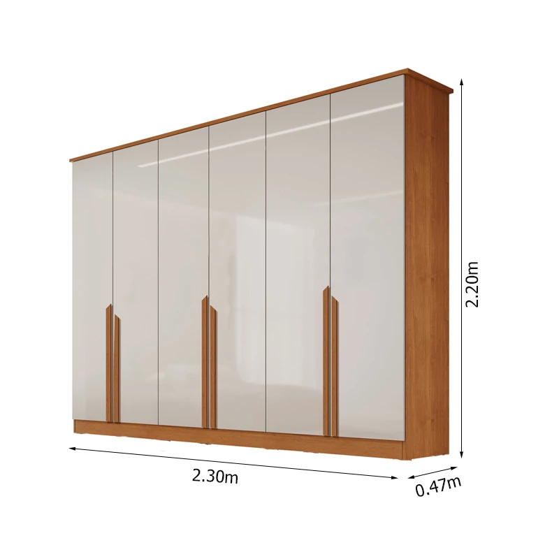 Guarda-roupa Casal Bianca 6 Portas Larg. 2.30m 100% MDF Nature/Off – Bianchi
