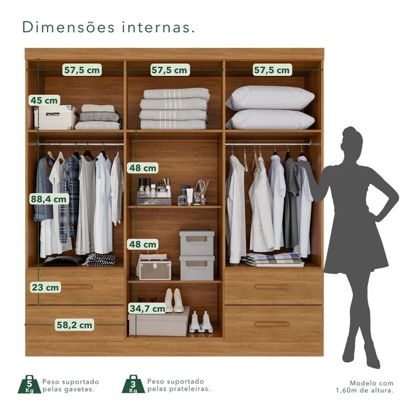 Guarda-roupa Texas Premium Cinamomo 6 Portas 4 gavetas Larg. 1.80m – Sallêto