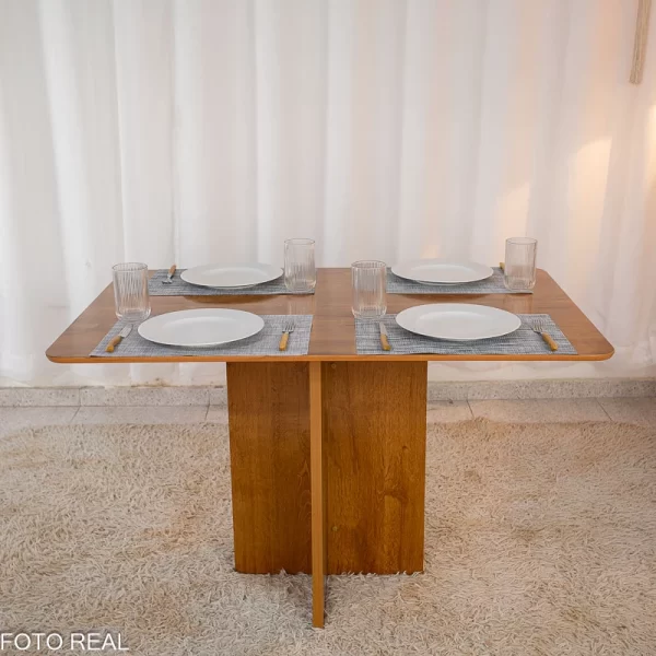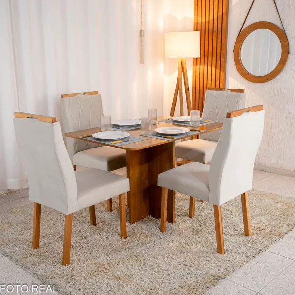 – Essa mesa tem o tamanho ideal para acomodar 4 cadeiras perfeitamente