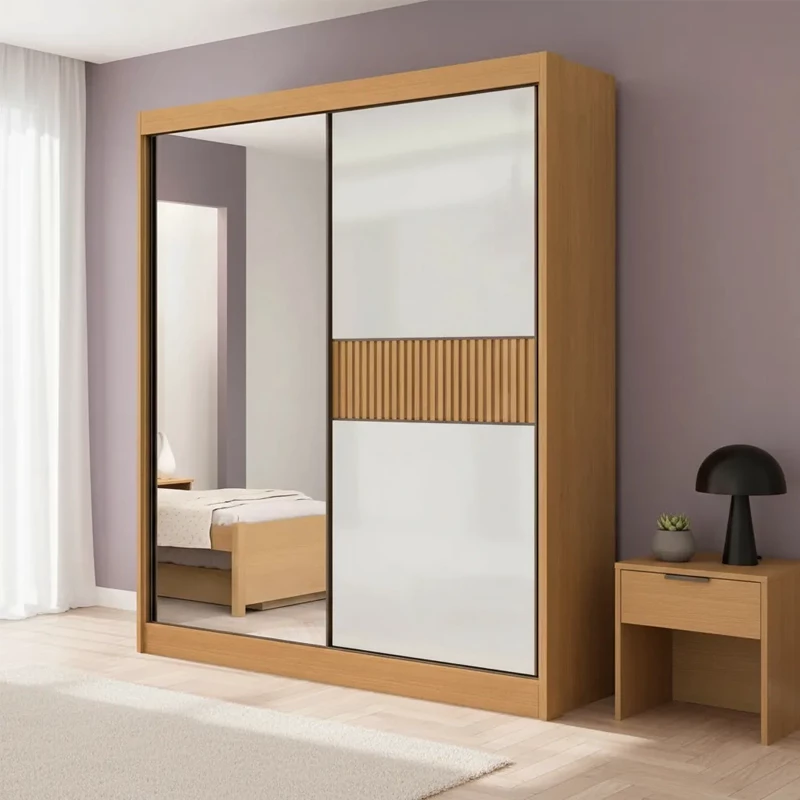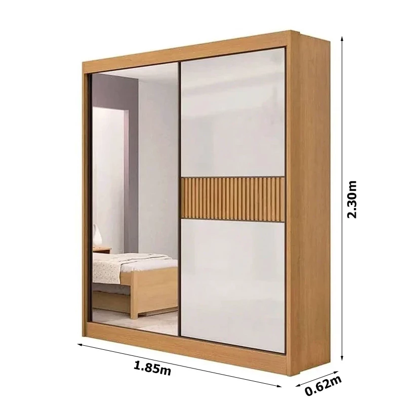 Roupeiro Atenas Ripado Cinamomo/Off 2 Portas C/ 1 Espelho 100% MDF Larg. 1.85m – D’Doro