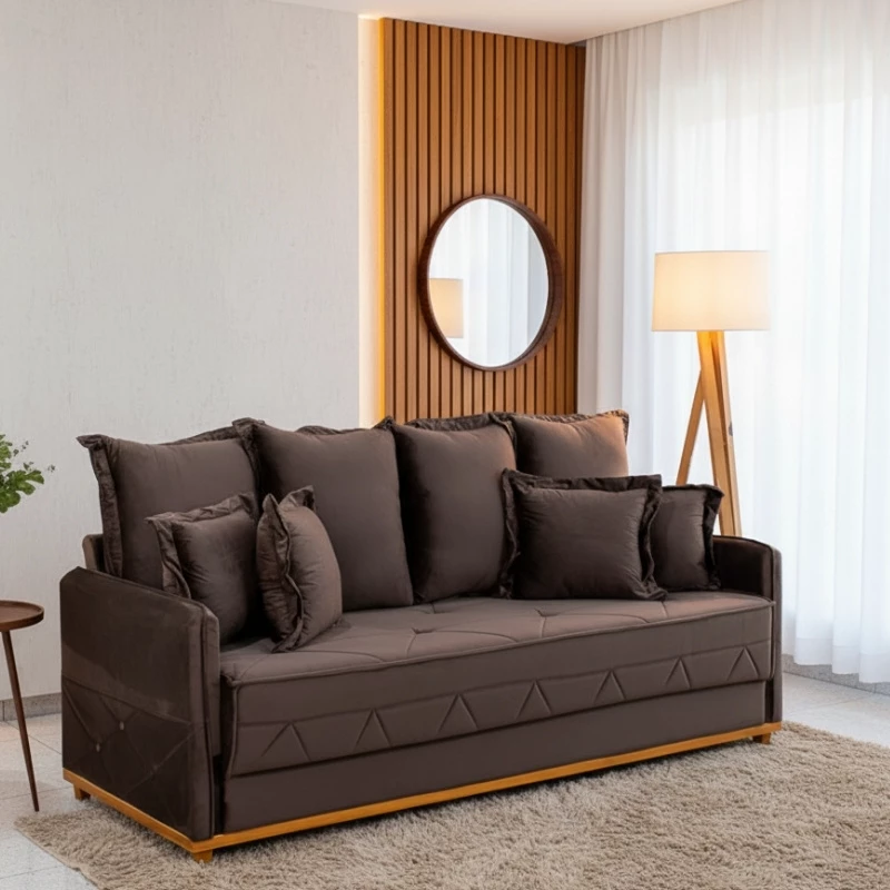 Sofá 3 lugares Vican Larg. 2.00m Veludo Marrom 5004 – Molas Bonnel