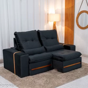 Sofá Retrátil e Reclinável 3 Lugares Carol Preto