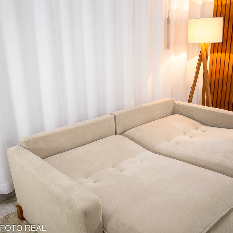Informamos que é normal haver uma abertura entre os módulos dos sofás retráteis. Essa abertura é necessária para evitar atrito entre os módulos durante o movimento de abrir e fechar, prevenindo o desgaste do tecido.