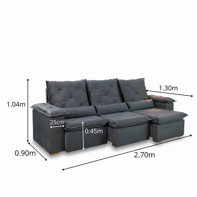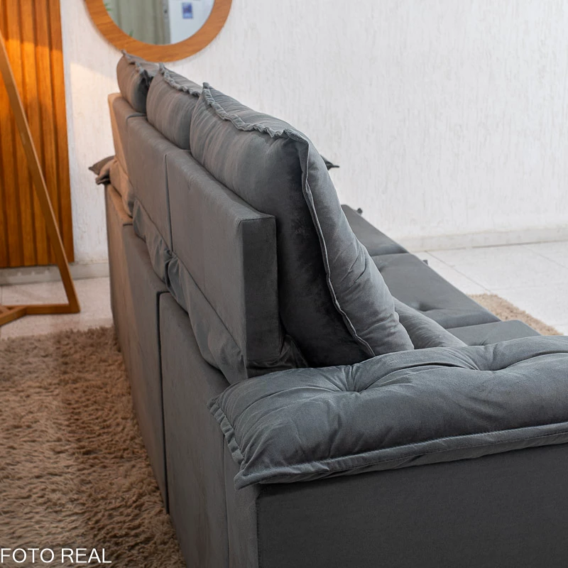 Sofá Retrátil Reclinável City 2.70m Veludo Cinza – Sem Caixa