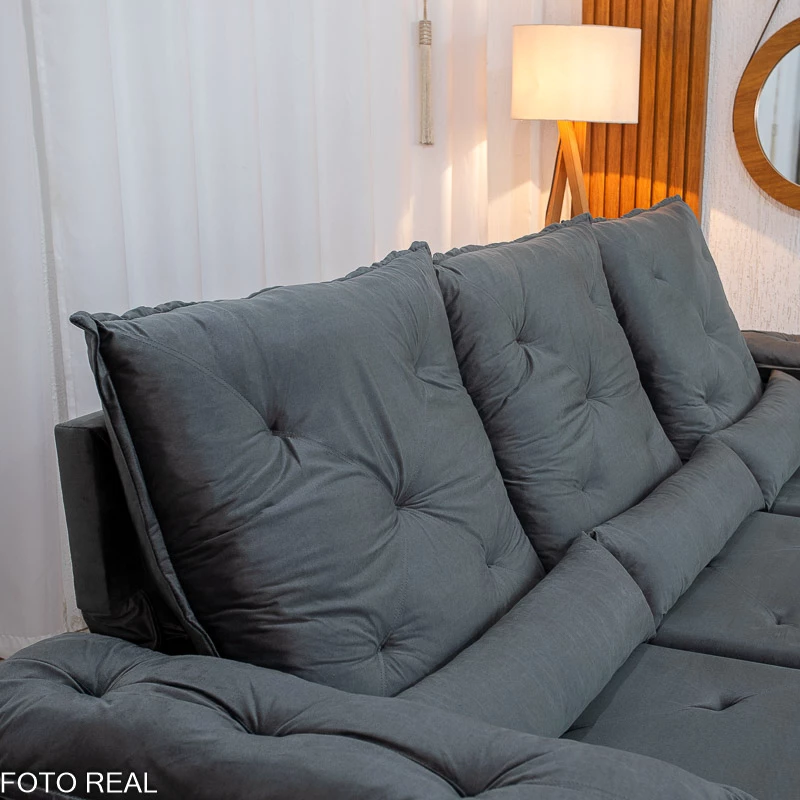 Informamos que é normal haver uma abertura entre os módulos dos sofás retráteis. Essa abertura é necessária para evitar atrito entre os módulos durante o movimento de abrir e fechar, prevenindo o desgaste do tecido.