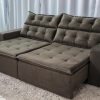 Sofá Retrátil Reclinável Egito 2.90m Molas Bonnel Sued Bege B09