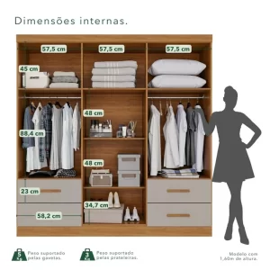 Guarda-roupa Texas Premium Cinamomo 6 Portas 4 gavetas Larg. 1.80m – Sallêto